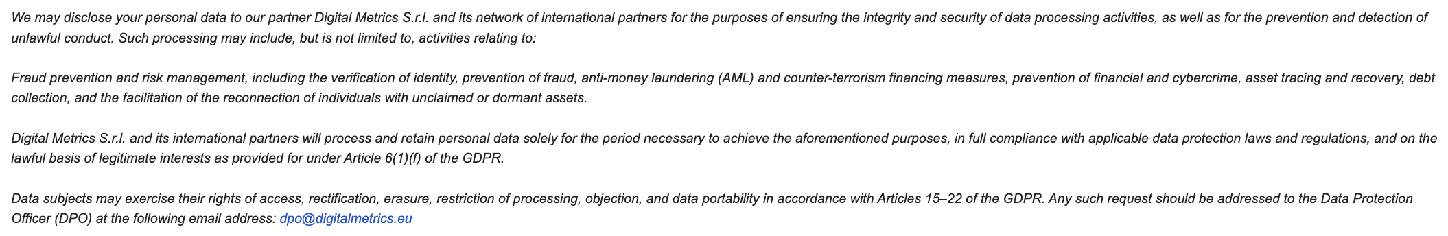 Ce partenaire et ses clients (liste sur : https://mydata.zecible.fr/destinataires ) sont susceptibles de vous contacter via email, sms, rcs, vms, voie postale, téléphone, à des fins de prospection commerciale, prospection à caractère politique ou syndical, gestion de contrats, dossiers ou fiches clients, communication non commerciale, profilage et élaboration de profils, recoupements avec d'autres données, lutte anti-fraude, mise en œuvre de dispositifs d’intelligence artificielle, statistiques et sondages. Les données collectées pourront leur être communiquées.